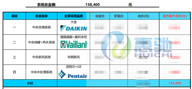 家居集成系統(tǒng): 大金VRVP系列中央空調(diào) 布朗中央新風(fēng)系統(tǒng) 德國威能中央水地暖 濱特爾中央凈水